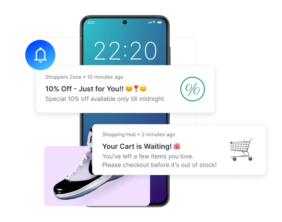 Eklenti, yöneticiye bir anlık bildirim özelliği sağlar. Böylece, o anda uygulamayı kullanmıyor olsalar bile müşterilere teklifler, fırsatlar, önemli uyarılar vb. gibi bildirimler göndererek onlarla etkileşim kurabilirler.
